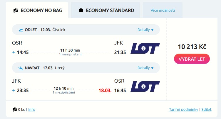 S pěkným výprodejem letenek do světa přichází polská aerolinka LOT. Na jejích křídlech poletíš z Ostravy i Prahy do několika destinací v USA, kanadského Toronta, Dillí či jihokorejského Soulu. Cena letenek startuje na parádních 10 213 Kč, kdy tě po cestě čeká jeden pohodový přestup ve Varšavě. Termíny jsou dostupné od února do května a na výběr jich je dostatek, tak leť třeba z Ostravy do New Yorku od 12. do 17. března.