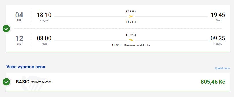 S příchodem března navýší nízkonákladová aerolinka Ryanair frekvenci letů na své pravidelné lince z Prahy do Pisy – rovnou na čtyři rotace týdně. Ke stávajícím pondělním a pátečním letům přibydou další v úterý a ve středu. A právě na těchto rotacích uprostřed týdne nyní pořídíš nejlevnější letenky do italského Toskánska. Ceny zpátečních letenek z Prahy (PRG) do Pisy (PSA) v rezervačním systému aerolinky startují na 805 Kč.