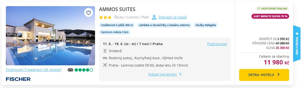 - 3* Ammos Suites za 5 990 Kč (snídaně)