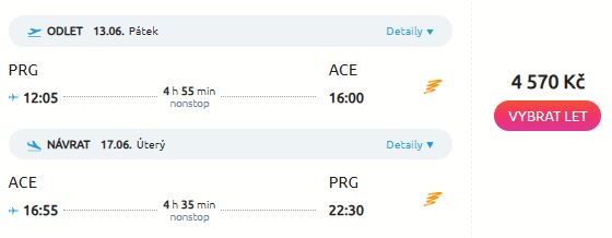 Cestuješ rád po vlastní ose? A chystáš se na Kanáry? Lepší nabídku v červnu těžko najdeš! Využij aktuálně velmi hezky naceněných letenek z Prahy (PRG) na Kanárské ostrovy od tuzemské aerolinky Smartwings a vydej se na ostrov podle svého gusta. Nejvíce termínů je dostupných v případě cesty na Tenerife (TFS), kam pořídíš zpáteční letenky za 4 589 Kč. Ještě o něco levněji, konkrétně za 4 570 Kč si můžeš zaletět na Lanzarote (ACE). A k dispozici jsou také akční letenky do Las Palmas (LPA) na ostrově Gran Canaria, a to 5 389 Kč.
