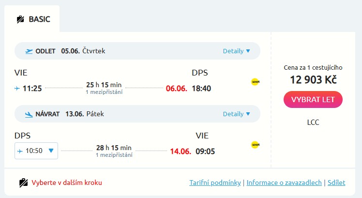 Sníš o ikonickém ostrově Bali, ze kterého přímo sálá pohoda? Využij nabídky od aerolinky Scoot, na jejíž křídlech poletíš na Bali z Vídně. Cena startuje na moc pěkné ceně 12 903 Kč a dostupné máš termíny v červnu, kdy na Bali frčí hlavní sezóna. Tak si ulov letenky třeba od 5. do 13. června. Po cestě tě čeká jeden přestup v Singapuru, který využij k návštěvě města a sfoukneš dvě mouchy jednou ranou.