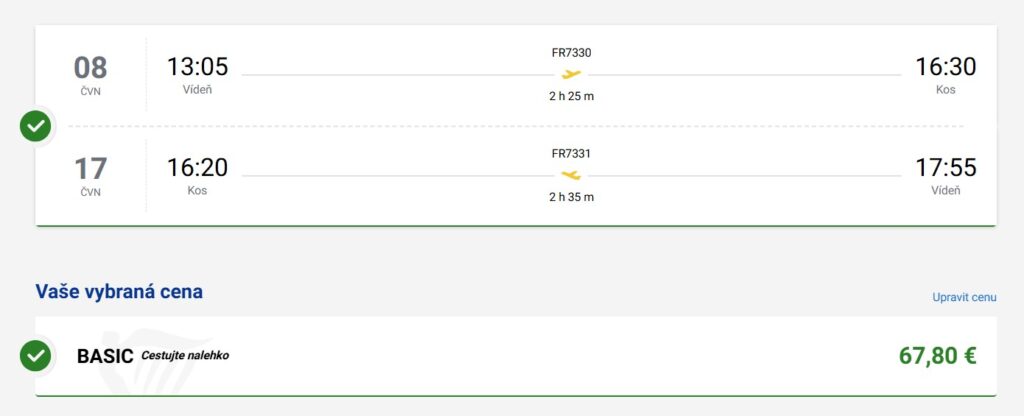 Léto se nám pomalu blíží a s ním přichází i myšlenky na to, kam letos vyrazit za teplem k moři. S pěknou nabídkou přichází aerolinka Ryanair, která nabízí levné letenky z Vídně na řecký ostrov Kos. Termíny během června, kdy už na ostrově panuje letní sezóna, jsou tvoje od 1 652 Kč. Tak si užij první opalovačku v Řecku třeba od 8. do 17. června.