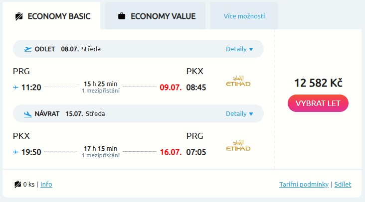 Navštiv Velkou čínskou zeď a mnohem víc během tvého výletu do Číny, který si dopřeješ díky fajnovým letenkám od aerolinky Etihad Airways. Zpáteční letenky z Prahy do Pekingu pořídíš za pěkných 12 582 Kč, kdy jsou dostupné parádní termíny od června do října – a to i přes letní prázdniny. Tak co třeba od 8. do 13. července? V obou směrech tě čeká jeden přestup na letišti v Abú Dhabí.