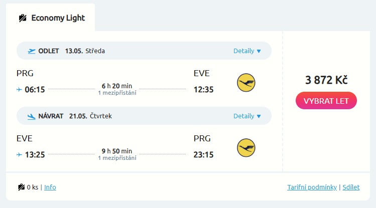 Skandinávská jízda pokračuje a opět s naším dalším tipem na levné letenky zamíříme do Norska. Tentokrát jsou v merku parádní letenky z Prahy do městečka Evenes, které je vstupní branou na nádherné Lofoty. S aerolinkou Lufthansa poletíš na sever Norska od fantastických 3 872 Kč v parádních termínech od dubna do června a během září. Tak se nech unést panenskou přírodou Lofotů třeba od 13. do 21. května. Po cestě tě čeká jeden přestup v Mnichově nebo ve Frankfurtu.