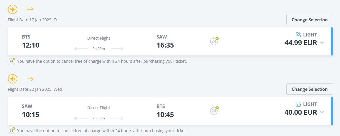 Nech se okouzlit dechberoucím Istanbulem díky letenkám od aerolinky Pegasus Airlines. Ta potěší cestovatele vyhlížející zpáteční letenky do Istanbulu z Bratislavy, neboť je uloví od pěkné cenovky 2 151 Kč. Kouzelné město na pomezí Evropy a Asie navštívíš buď ještě před Vánoci a nebo v termínech od ledna do dubna příštího roku. Tak si dej ten nejlepší kebab a ochutnej Turecko například v termínu od 17. do 22. ledna. Cílovým přístavem pro tebe bude sekundární letiště Sabiha Gokcen.