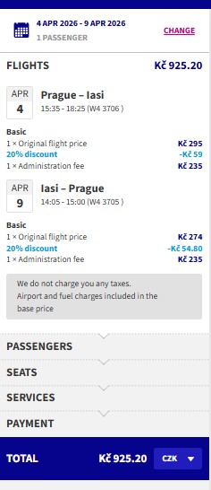 Vyprav se do země Drákuly díky zpátečním letenkám, které na přímých letech nabízí aerolinka Wizz Air doslova za pár kaček. Z Prahy poletíš do Jasy či do rumunského hlavního města Bukurešti od parádních 925 Kč, a to na prodloužené víkendy či delší pobyty. Klasicky platí, že na nejnižší ceny dosáhnou pouze členové Wizz Discount Clubu při nákupu na webu dopravce, ostatní si jen nepatrně připlatí. Termíny jsou k mání od března do května, tak leť třeba od 4. do 9. dubna, kdy využiješ i Velikonoční pondělí.