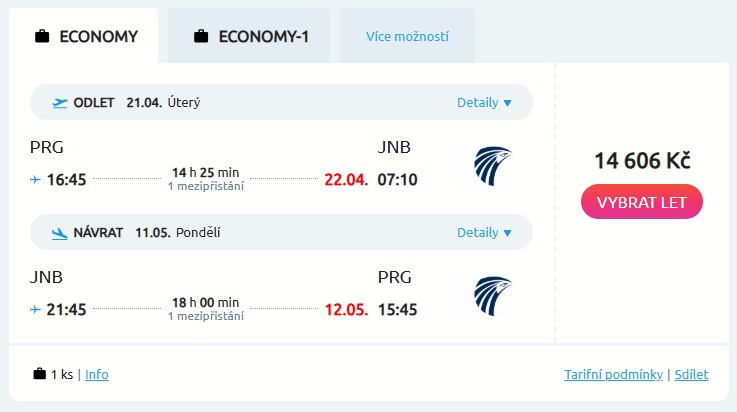 Pořádná nálož zážitků na tebe čeká na samotném jihu Afriky. Tak se mrkni na pěkné letenky do nespoutané Jihoafrické republiky, které nabízí aerolinka EgyptAir. Na jejích křídlech poletíš z Prahy do Johannesburgu za 14 606 Kč, kdy v ceně máš i odbavené zavazadlo zdarma. Termíny připadají na konec dubna a celý květen, tak si vychutnej nefalšovanou divočinu například od 21. dubna do 11. května a využiješ navíc i dva státní svátky. Po cestě tě čeká v obou směrech jeden přestup v egyptské Káhiře.