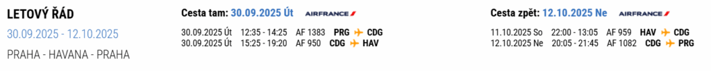- Havana – Praha –> 22:00 – 21:45 (+1)