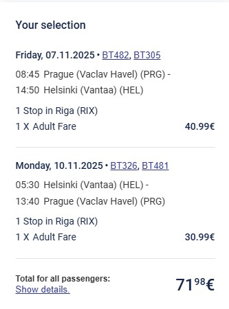 - Rezervuj: přímo přes náš vyhledávač nebo přes stránky airBaltic