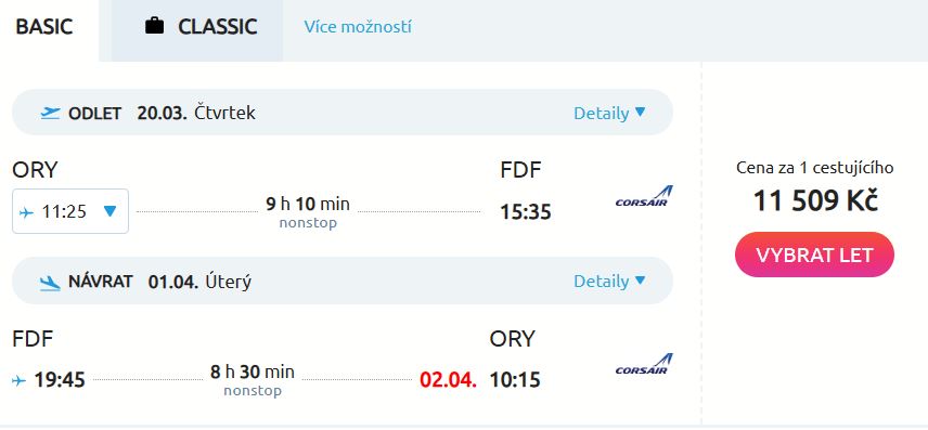 - Paříž – Pointe á Pitre s Corsairem za 11 526 Kč >> v našem kalendáři