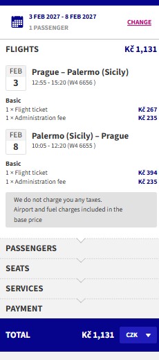 Náhled letenky z Prahy do Palerma za 1 131 Kč