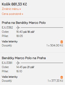 Náhled letenky z Prahy do Benátek za 881 Kč