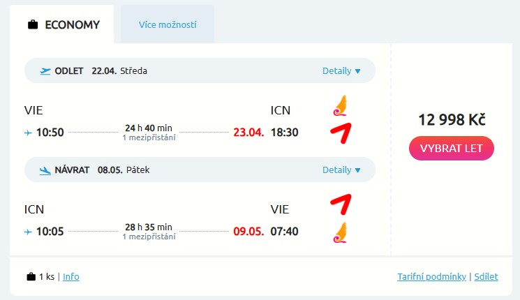 Přemýšlíš, kam se vypravit během jara? Vydej se do rozkvetlé Jižní Koreji díky pěkným letenkám od aerolinek Hainan Airlines a Asiana. Z Vídně do tamějšího hlavního města Soulu letíš za 12 998 Kč a z Prahy o pár kaček dráž za 13 608 Kč. Na výběr máš z termínů od dubna do června letošního roku, tak využij třeba květnové státní svátky a leť od 22. dubna do 8. května. Po cestě tě čeká přestup v čínském Shenzenu (poletíš-li z Vídně) nebo Pekingu (při odletech z Prahy).