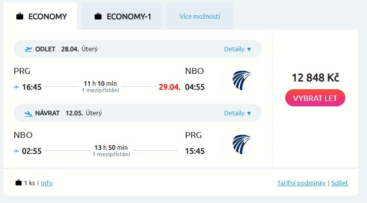 Náhled letenky z Prahy do Keni za 12 848 Kč