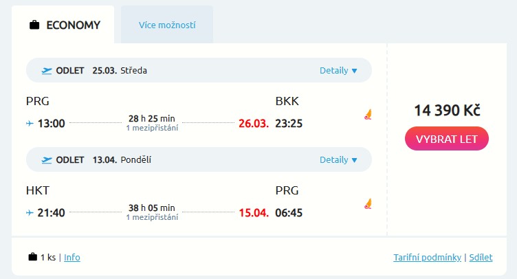 Náhled letenky z Prahy do Thajska za 14 390 Kč