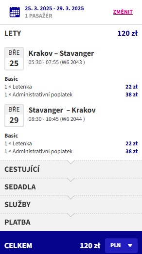 Nech se okouzlit nezapomenutelnými výhledy na norské fjordy. Zpáteční letenky do města Stavanger pořídíš nejlevněji z Krakova, a to díky nabídce aerolinky Wizz Air. Vyjdou tě na suprovou cenovku 717 Kč na termíny po celý březen. Klasicky platí, že na nejnižší ceny dosáhnou pouze členové Wizz Discount Clubu při nákupu na stránkách dopravce. Pokud poletíš alespoň s jedním dalším parťákem, členství se ti vyplatí při první zpáteční letence. Tak prozkoumej norskou přírodu a výhledy například od 25. do 29. března.