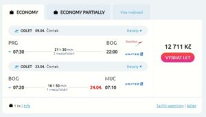 Základní tarif navíc umožňuje bezplatně přepravit také odbavené zavazadlo s limitem 23 kg. Cestou na jihoamerický kontinent tě čekají dva přestupy – ve Vídni (VIE) a New Yorku-Newarku (EWR). Na zpáteční cestě do Evropy potom již pouze jeden přestup (v případě návratu z Bogoty), a to buď opět v NYC, nebo v Houstonu (IAH). Varianta s návratem z Medellínu je potom routovaná přes Panama City (PTY) a New York.
