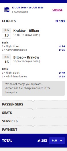 Náhled letenky z Krakova do Bilbaa za 1 106 Kč
