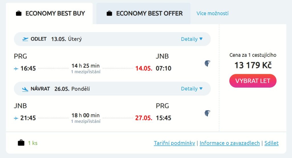 Jak jsme již zmínili, se zavazadly si nemusíš dělat starosti, neboť máš v ceně odbavený bágl do 23 kg. Na palubu egyptské aerolinky si navíc vezmeš klasický příručák o rozměrech do 55 × 40 × 23 cm. Během letů dostaneš občerstvení a nápoje zdarma.