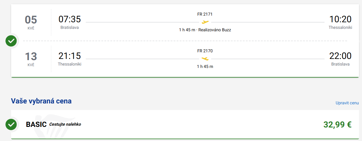 Náhled letenky z Bratislavy do Soluně za 805 Kč