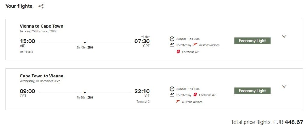 S velice pěknou nabídkou letenek na jih Afriky přichází švýcarská aerolinka Swiss International Air Lines ve spolupráci s Austrian Airlines a Edelweiss Air. Jihoafrické Kapské Město navštívíš s odletem z Vídně a zpáteční cesta tě vyjde na suprových 10 983 Kč. Termíny jsou k mání především v listopadu a prosinci letošního roku, pár jich vyzobeš také v lednu. Tak zažij nezapomenutelné dobrodružství nejen na safari například od 25. listopadu do 10. prosince. Po cestě tě čeká jeden pohodový přestup ve švýcarském Curychu.
