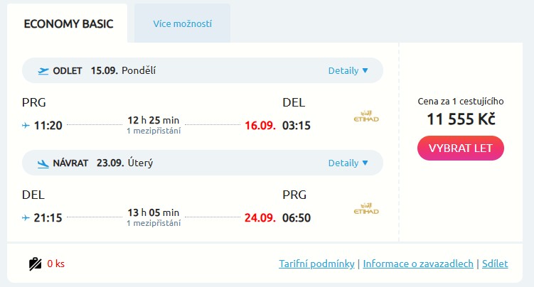 Oblíbená aerolinka Etihad, která od června začne létat také do Česka, přichází s pěknými cenami letenek z Prahy do barevné Indie. Do tamějšího hlavního města Dillí si zaletíš za 11 555 Kč a do západoindické Bombaje za 12 781 Kč. A pokud chceš spojit návštěvu obou metropolí, mrkni se na open-jaw letenky za 12 202 Kč. Bohatá nabídka termínů je dostupná v červnu, červenci a září letošního roku. Tak se vydej do Indie například od 15. do 23. září. Po cestě tě nemine jeden přestup v Abú Dhabí.
