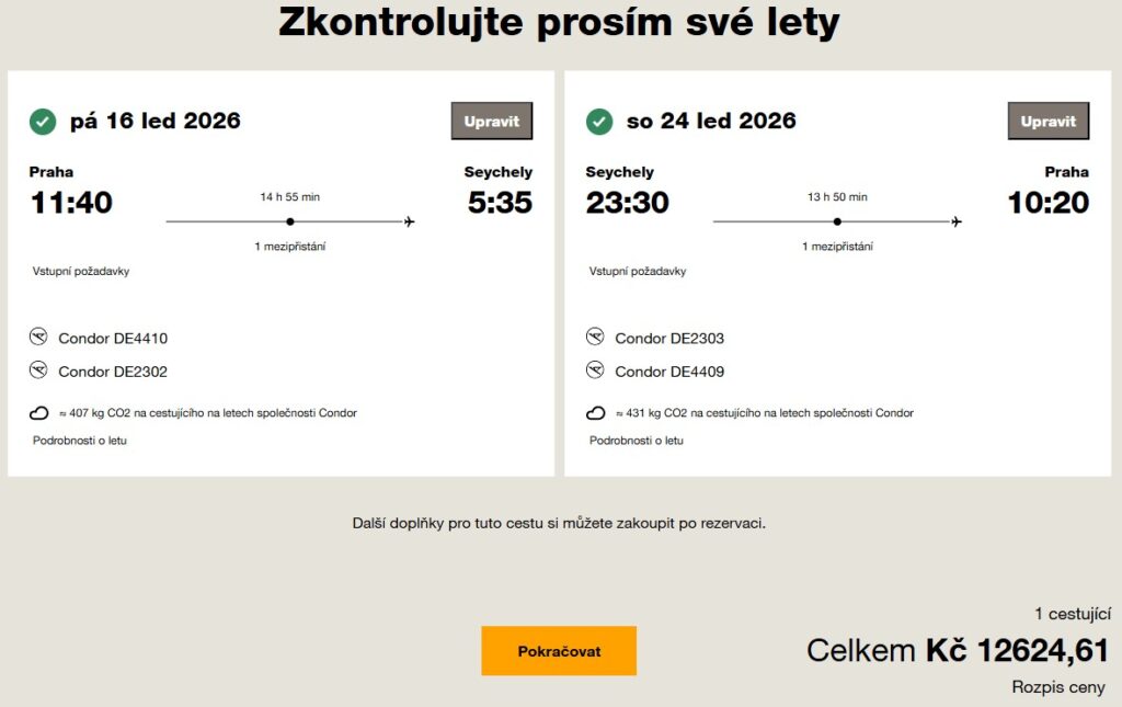 Náhled letenky z Prahy na Seychely za 12 624 Kč