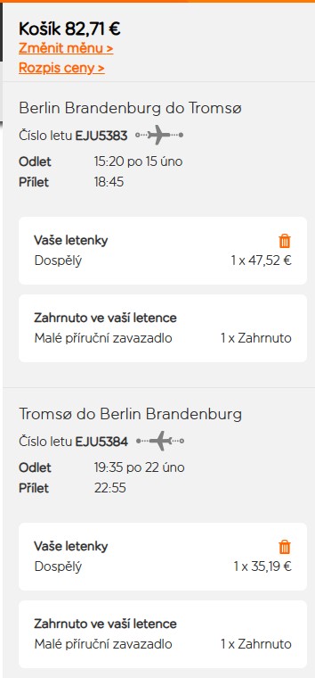 Severní Norsko okouzlí každého, kdo má rád pohádkovou zasněženou krajinu. Pokud se řadíš mezi ně a máš dobře dostupné letiště v Německu, nech se oslovit pěknou nabídkou od aerolinky easyJet. Ta nabízí přímé lety z Berlína do Tromso, kdy za zpáteční letenky zaplatíš od sympatických 2 011 Kč. Dostupné jsou kratší i delší termíny během příštího ledna a února, tak se vydej na sever třeba od 15. do 22. února a zažij kouzelnou zimu, jakou u nás nemáme.