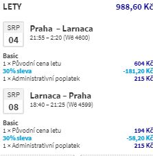 A ceny letenek jsou, jak už jsme u Wizz Airu v poslední době zvyklí, naprosto skvělé! K jejich nákupu navíc během dnešního dne můžete využít i aktuálně probíhající 30% slevovou akci. Na nejlevnější ceny tradičně dosáhnou členové věrnostního programu Wizz Air Discount Club a například za letenky z Prahy do Larnacy na začátku srpna zaplatí doslova pouhých 989 Kč! Většina zpátečních letenek v atraktivních termínech (srpen a září) pro nečleny „WDC“ vyjde na částku jen lehce překračující 2 tisíce Kč. A to je na hlavní sezonu cena naprosto parádní! Vždyť hlavní konkurent na lince do Larnacy, tuzemský dopravce Smartwings, nabízí zpáteční letenky za 9 tisíc Kč…