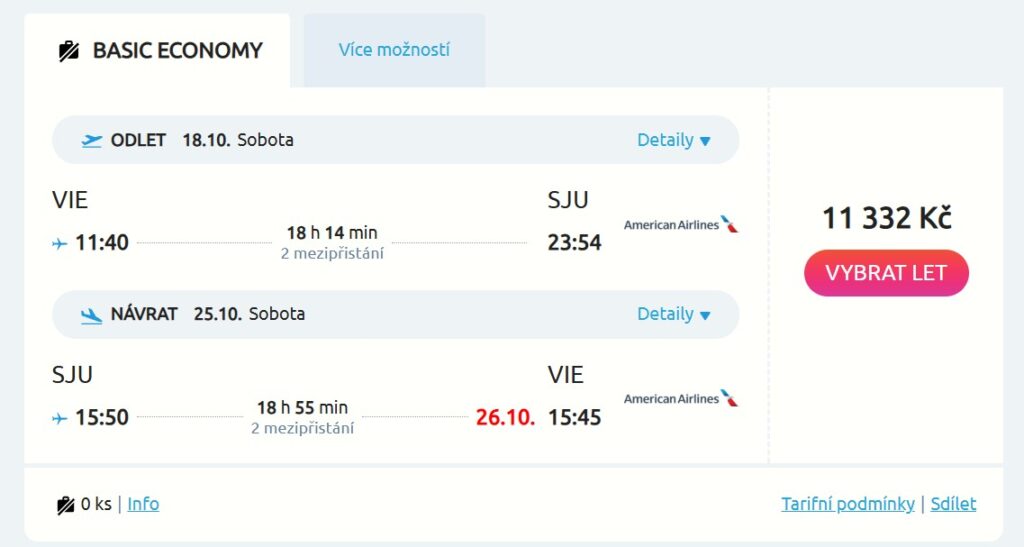 V nabídce aerolinky American Airlines opět ulovíš parádní letenky do Karibiku. Na tropický ostrov Portoriko si zaletíš z Vídně za pěknou cenovku 11 332 Kč. K mání jsou zejména říjnové termíny, tak neváhej a vychutnej si karibskou pohodu například od 18. do 25. října. Po cestě tě čekají dva přestupy, a to v Londýně a Filadelfii. Lety mezi hlavním městem Rakouska a Spojeného království operuje aerolinka British Airways.