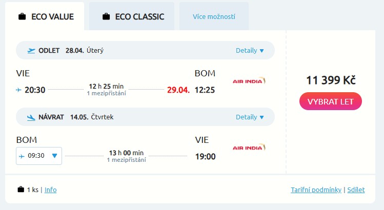 Rozmanitá Indie je unikát, který jinde ve světě nenajdeš. Takže pokud ji máš na svém cestovatelském wishlistu, mrkni se na akční letenky z Vídně, které momentálně nabízí aerolinka Air India. Na jejích křídlech poletíš do Bombaje za 11 399 Kč, Bengalúru za 11 884 Kč, Ahmadábádu za 12 704 Kč nebo Čennaí za 12 990 Kč. Na výběr máš z pestré palety termínů od dubna až do září, tak leť třeba přes květnové svátky od 28. dubna do 14. května. Po cestě tě vždy čeká jeden přestup na letišti v Dillí.