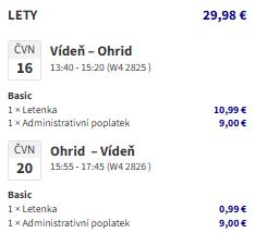 Náhled letenky z Vídně do Ohridu za 752 Kč