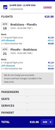 Náhled letenky z Bratislavy do Plovdivu za 486 Kč