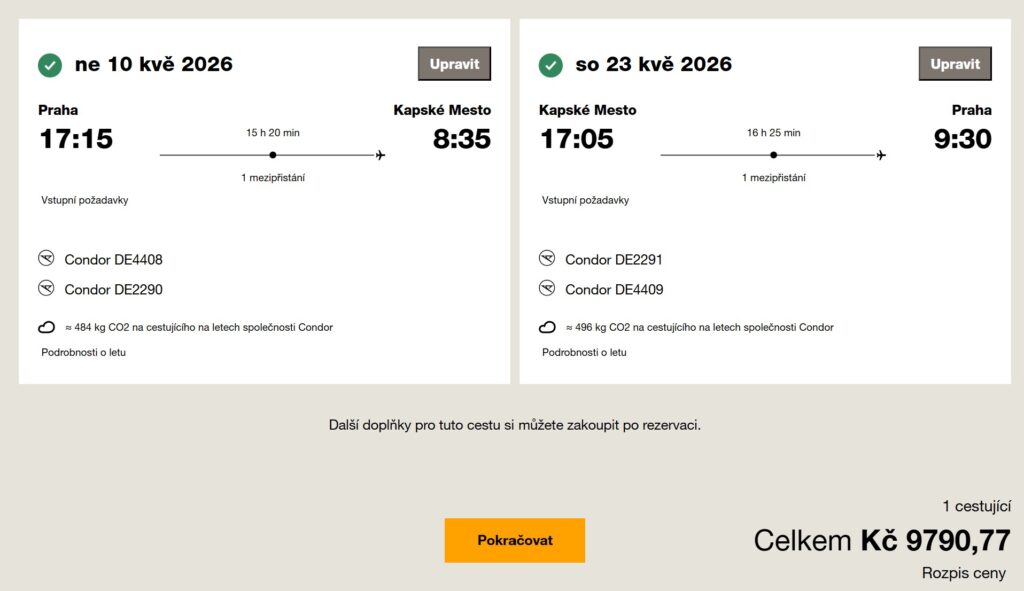 Náhled letenky z Prahy do Kapského Města za 9 791 Kč