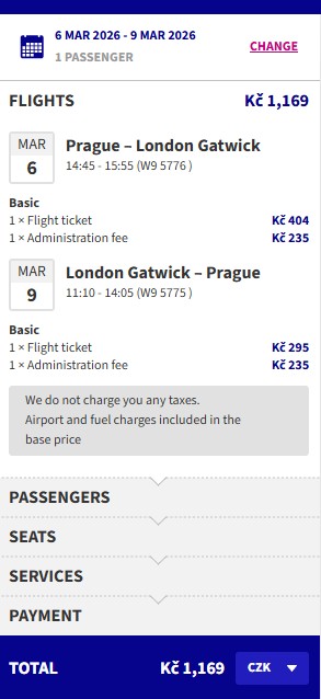 Náhled letenky z Prahy do Londýna za 1 169 Kč
