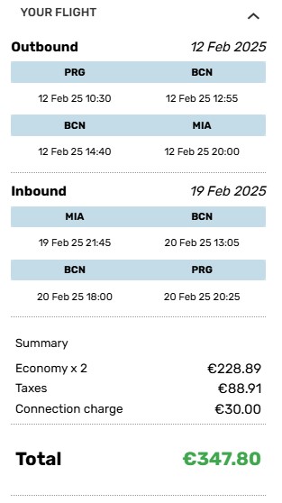 V ceně letenky máš zdarma přepravu příručního báglu o rozměrech do 56 × 45 × 25 cm. Odbavené zavazadlo do 15 kg si přikoupíš za 92 € v jednom směru. Během letů je občerstvení a nápoje pouze za poplatek.