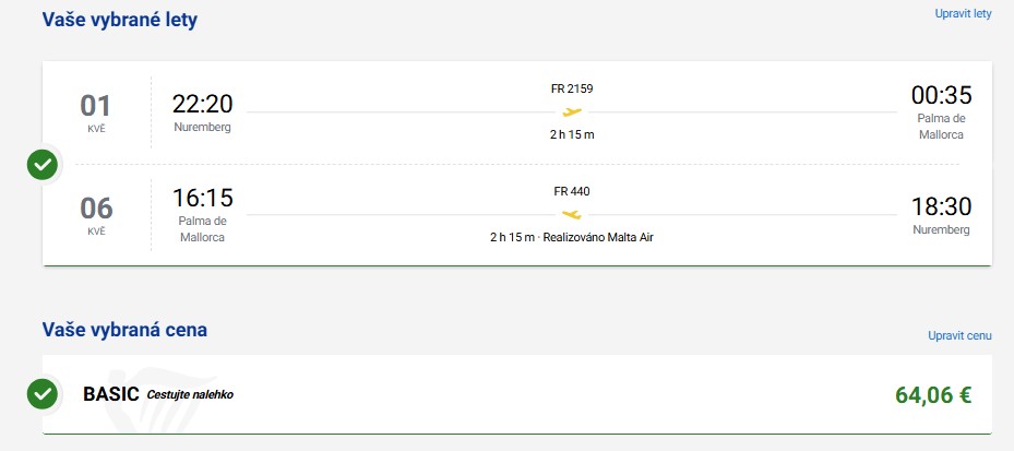 S neodolatelnou nabídkou letenek do Středozemí přichází aerolinka Ryanair! Na jejích křídlech poletíš z Norimberku na oblíbenou Mallorku a zpáteční cestu pořídíš od naprosto parádních 948 Kč. Za nejlevnější cenu je dostupný termín od 1. do 6. května, kdy využiješ i statní svátek. Další termíny jsou k mání od konce dubna do června letošního roku, tak neváhej a vychutnej si siestu na Baleárech.
