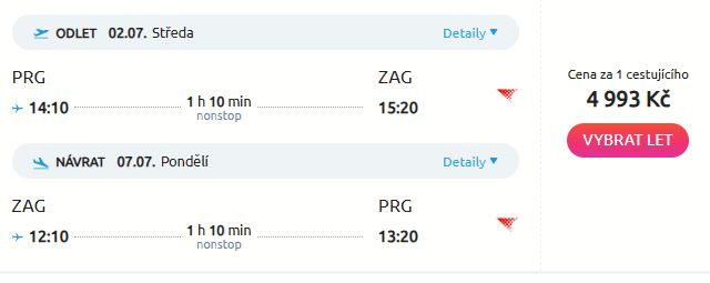 Údaje o nové lince jsou již nahrány v rezervačním systému dopravce i globálních distribučních systémech – např. je najdeš v našem vyhledávači. Cena zpátečních letenek na nové lince z Prahy do Záhřebu aktuálně vychází na 4 993 Kč, a to plošně na všech termínech. Jedná se o letenky v základním tarifu „Easy“ zahrnujícím pouze přepravu příručního zavazadla. Letenky ve vyšším tarifu „Opti“, vč. odbaveného báglu á 23 kg, vyjdou o cca tisícikorunu dráže.