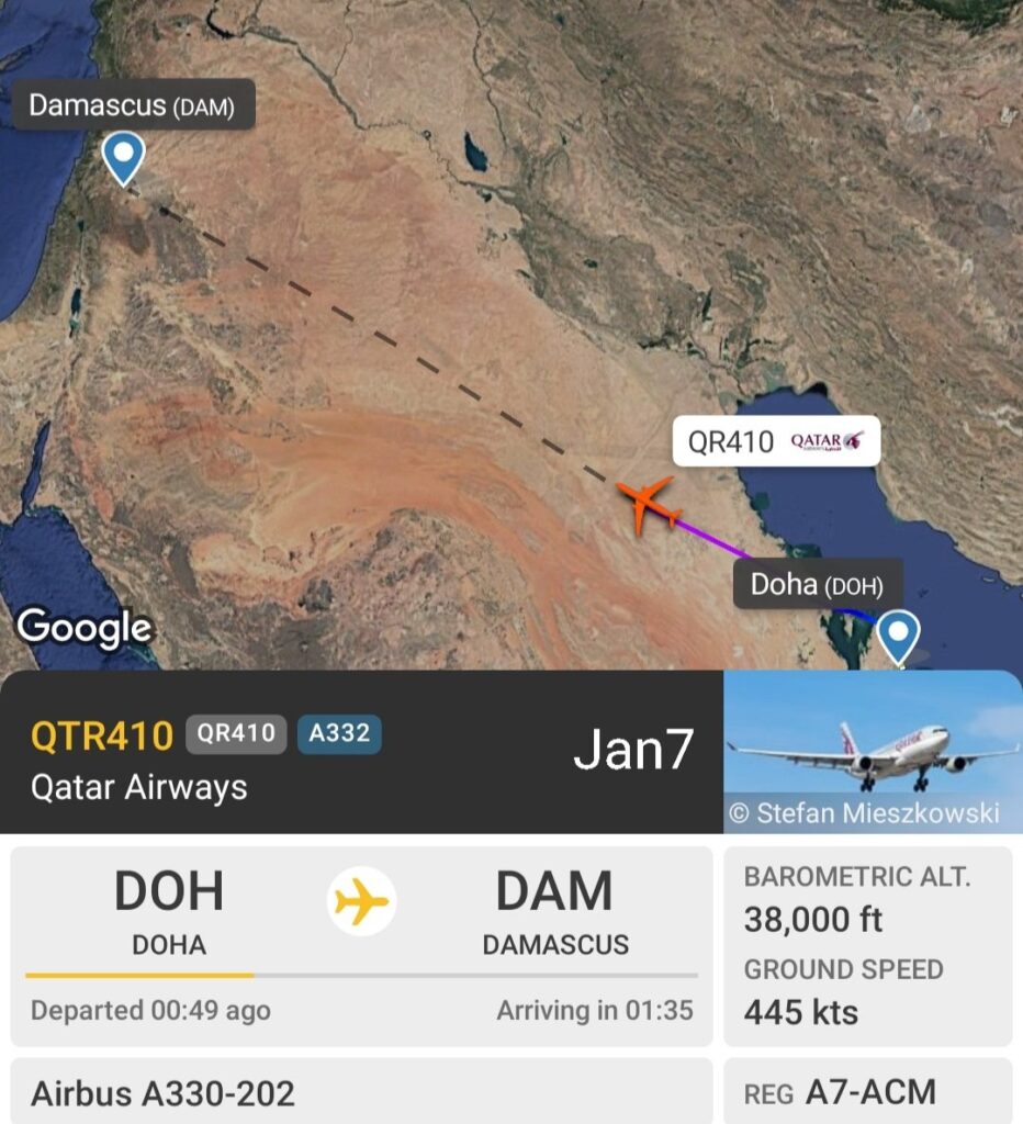 Qatar Airways i Turkish Airlines obnovily lety do Sýrie. Katarská letecká společnost se jako první velký dopravce vrátila do syrského Damašku (DAM) již 7. ledna 2025. Mezi Dauhá (DOH) a hlavním městem Sýrie nabízí tři lety týdně (pondělí, pátek a sobota). Nasazuje na ně letadla typu Airbus A330-200. Druhým velkým dopravcem, který obnovil lety do země, se staly Turkish Airlines. Ten se na linku mezi Istanbulem (IST) a Damaškem vrátil ve čtvrtek 23. ledna 2025. Také v jeho rezervačním systému jsou vypsány tři lety týdně (úterý, čtvrtek a neděle), jejichž provoz zajišťují letadla typu Airbus A330-200.
