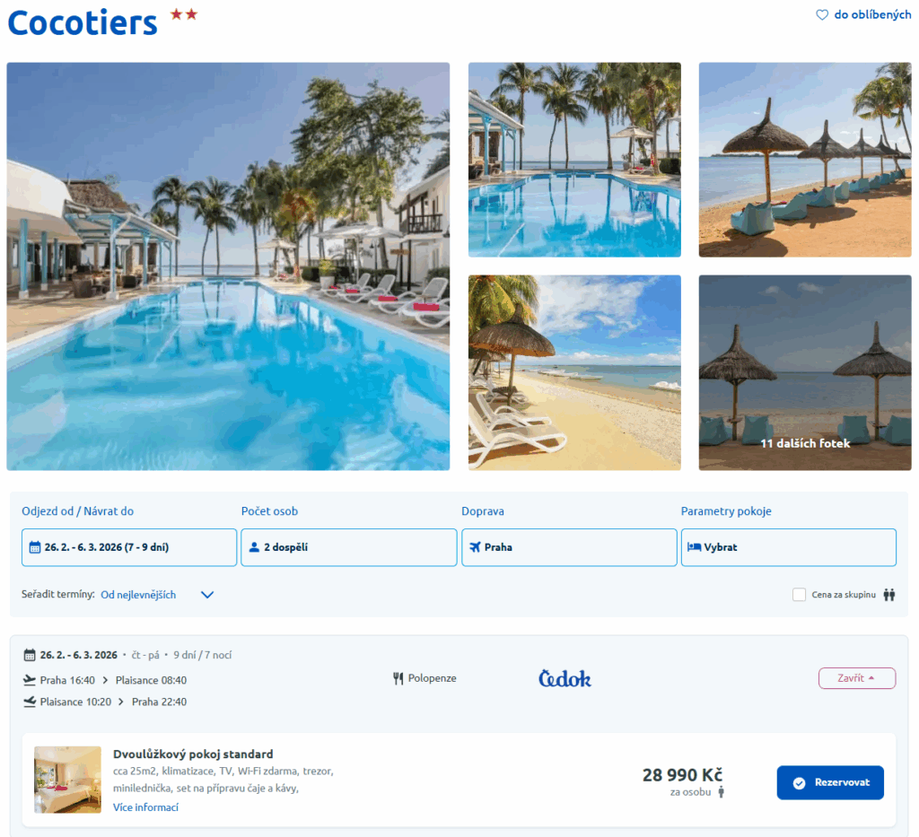 V ceně zájezdu máš vše, co na pohodovou cestu potřebuješ – zpáteční letenky, ubytování se stravou, transfery v destinaci i služby místního průvodce nebo virtuálního česky mluvícího delegáta. Pokud tedy chceš ještě před jarem utéct do exotiky, je ten správný čas se rozhodnout – kdo dřív rezervuje, ten dřív odpočívá pod palmami na Mauriciu.