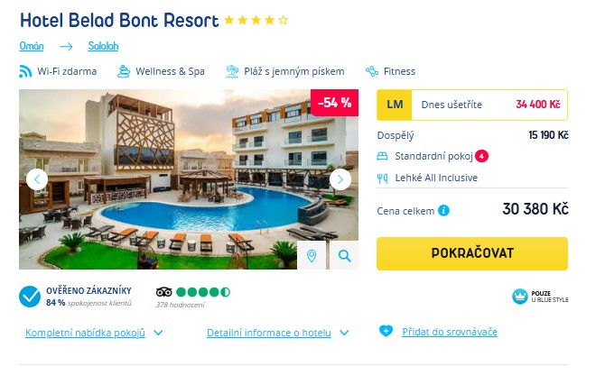 Cestovní kancelář Bluestyle se blýskla s nabídkou pěkných last minute zájezdů z Prahy do jižního Ománu, tak si sbal bágl a odleť zítra ráno za relaxem na Arabský poloostrov. Ceny za celý balíček začínají na 15 190 Kč, kdy budeš bydlet ve čtyř- nebo pětihvězdičkovém hotelu s all inclusive /light. Týden v teple začíná už zítra 28. listopadu a domů se vrátíš 5. prosince.