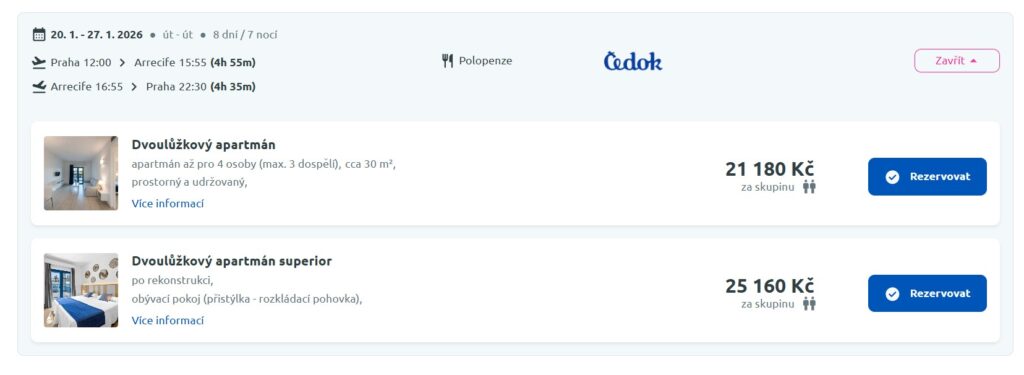 - Rezervuj: s nejlepším servisem přes náš vyhledávač nebo přímo přes stránky cestovní kanceláře