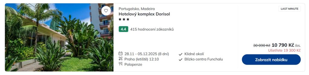 Stresuje tě příchod Vánoc, nákupy dárků a tak podobně? Leť raději na Madeiru, kde si užiješ první adventní týden. Levné zájezdy z Prahy má v režii cestovní kancelář Čedok, díky níž letíš na ostrov věčného jara od 10 790 Kč a bydlet budeš ve tří-, čtyř- nebo pětihvězdičkovém hotelu s různými typy stravování. Termín zájezdu připadá na týden od 28. listopadu do 5. prosince.