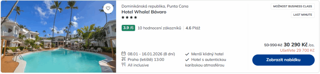 - 8.1.: Praha – Punta Cana –> 13:00 – 18:30