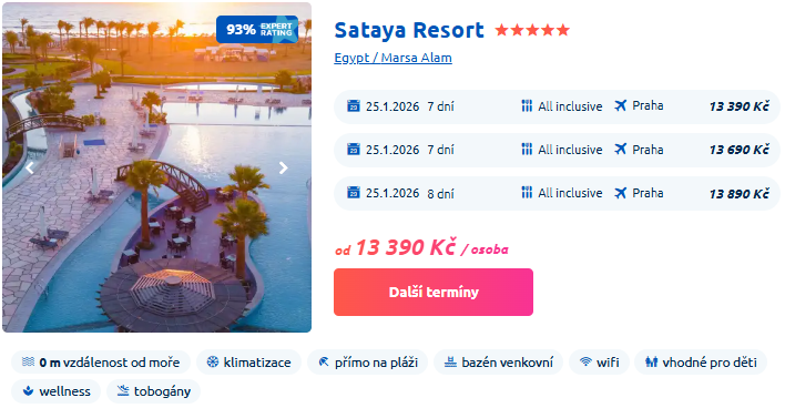 - 5* Hotel Sataya Resort za 12 390 Kč s naší slevou (all inclusive)